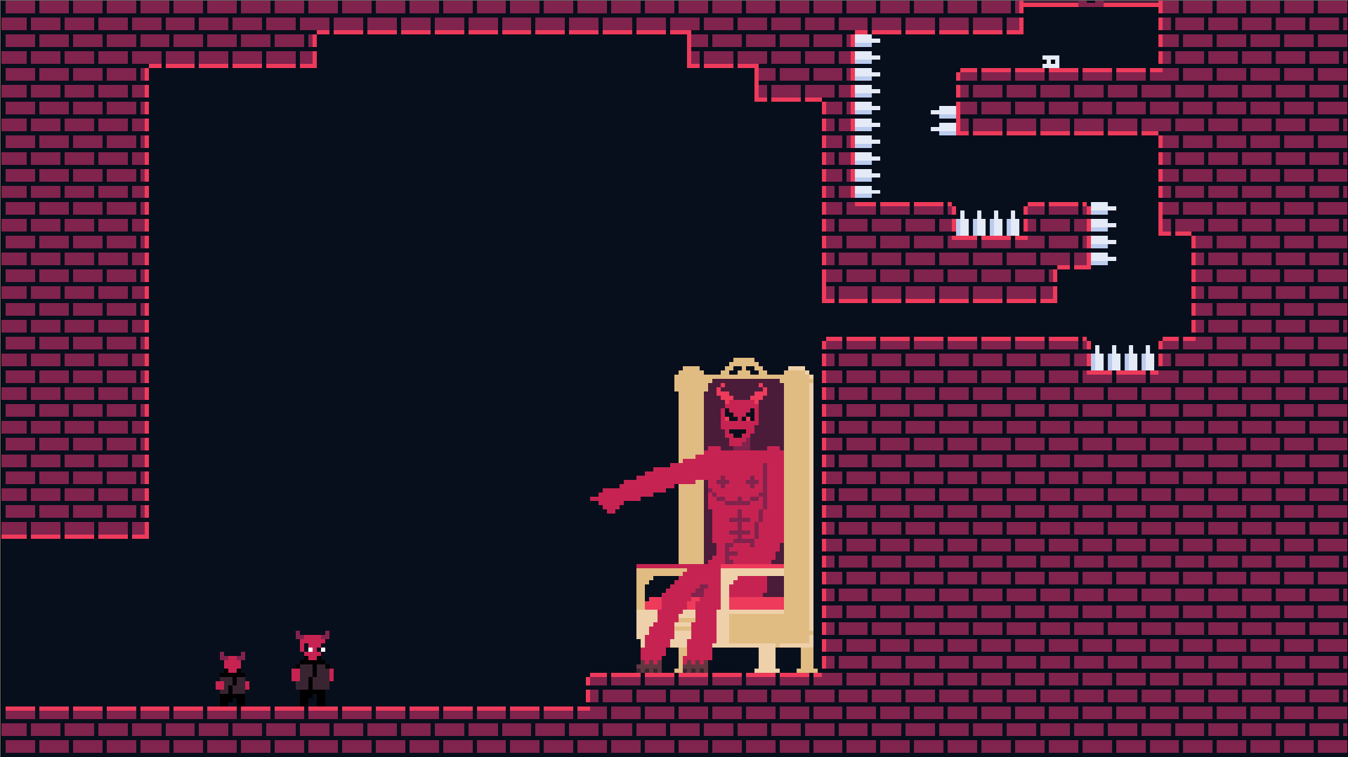 Remade Satan's sprite. Now he looks very handsome and buff. Also added small parkour before you take over his body. Beating the game should display your stats also.
